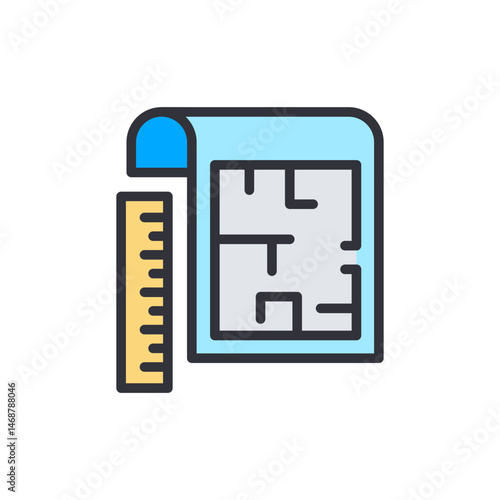 Creative Blueprint Layout with Measurement Scale Design Concept Symbol