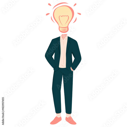 Creative Businessman with Lightbulb Head Symbolizing Ideas