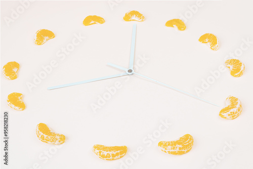 Creative clock styled citrus indoor shot on white background