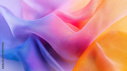 creative composition of layered mesh fabric in neon shades arranged dynamically with bold patterns and ample copy space