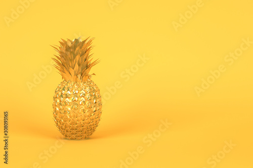Creative Gold pineapple on yellow background.