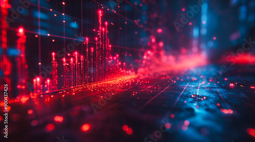 Creative growing candlestick forex chart on blue grid wallpaper, showcasing financial growth and stock market trends in 3D rendering.