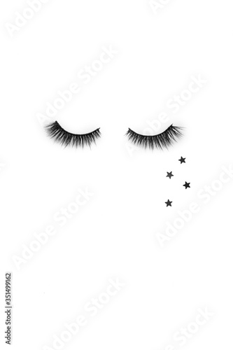 Creative layout with eyelashes. Closed eyes on white background