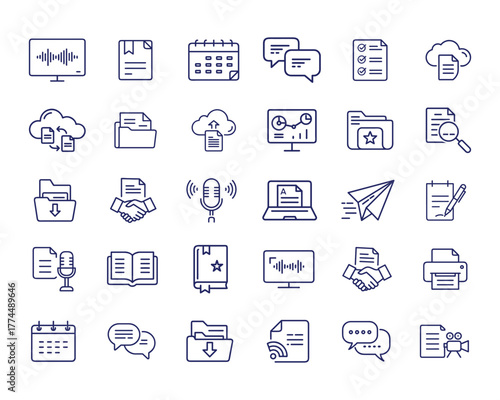 Creative Media Line Icons – Podcast, Video, Article, and File Management Vector Pack