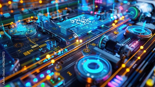 Creative process, engineering layout, technology interface, vibrant display, engineering skills