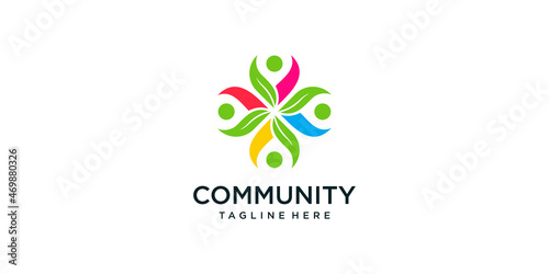 Creative team work with combination leaf and human concept community . logo design vector Premium Vector