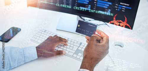 Credit card, hands or trader typing on computer for stock market or cryptocurrency website for payment. Digital info, password or closed of man trading online for savings investment growth on screen