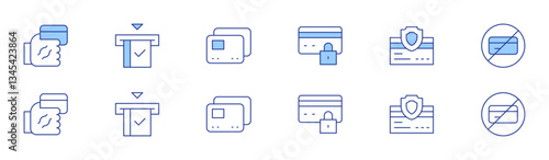 Credit card icon set in two styles, Duotone and Thin Line style. Editable stroke. secure payment, credit card, no credit card