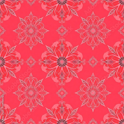 Crimson Floral Damask Seamless Pattern