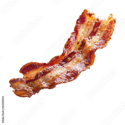 Crispy bacon strip against black