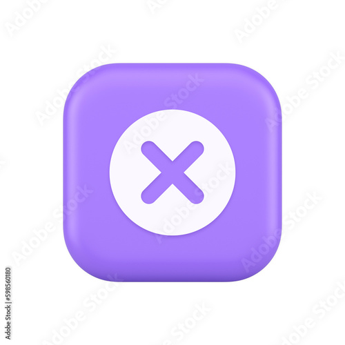 Cross button cancel reject decline negative forbidden fail 3d realistic icon