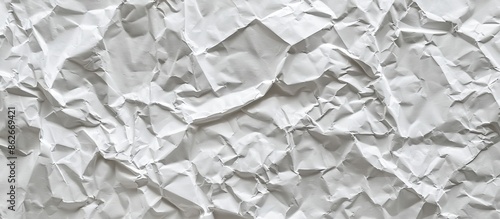 Crumpled light gray paper texture creates an abstract background with ample copy space image for a blank layout.