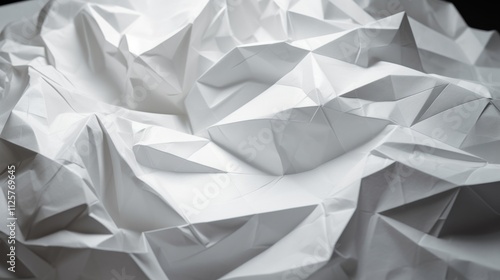 Crumpled white paper with soft grid lines, The texture features clear folds and creases
