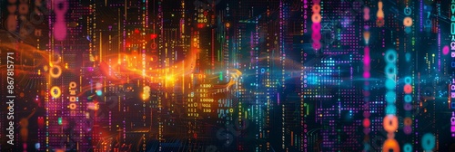 Cryptocurrency, a colorful abstract design with flowing data patterns and crypto nodes, showcasing interactive blockchain