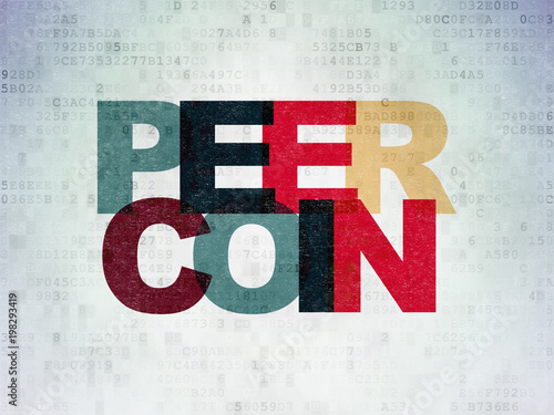 Cryptocurrency concept: Painted multicolor text Peercoin on Digital Data Paper background