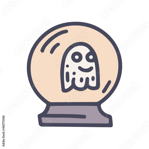 crystal ball with ghost color vector doodle simple icon
