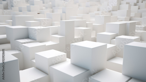 Cube background. Vast array of white cubes of different sizes, arranged in a random pattern. Minimalist color scheme and geometric pattern.