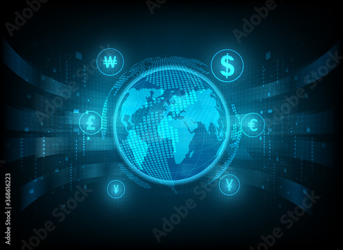 Currency exchange technology Blue background