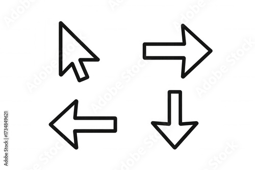 Cursor and arrow pointers set showing navigation, direction, and interface elements on transparent background