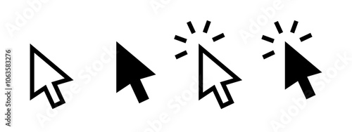 Cursor arrow icon. Arrow pointer symbol. Computer mouse interface cursor vector illustration. Web interface pointer pictogram graphic design. Click sign isolated.