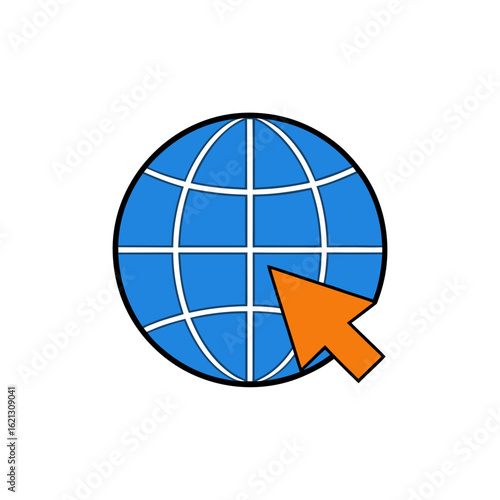 Cursor clicking on a blue globe icon representing the internet