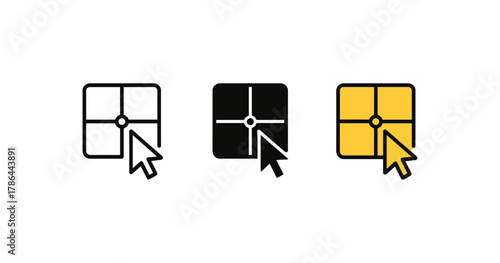 Cursor clicking on target icons in flat minimalist style