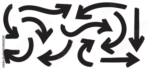 Curve arrow icon bold brush texture effect vector design element hand drawn stroke set isolated