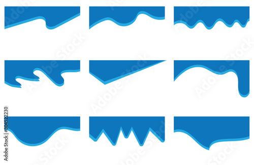 Curve Lines, Drops, Wave Collection of Abstract Design Element for Top, Bottom Page Web Site. Template of Modern Dividers Shapes for Website Pictogram Set. Isolated Vector Illustration