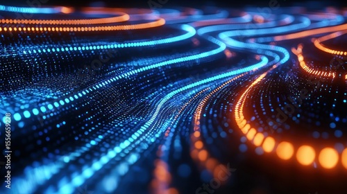 Curving, glowing data streams; digital visualization