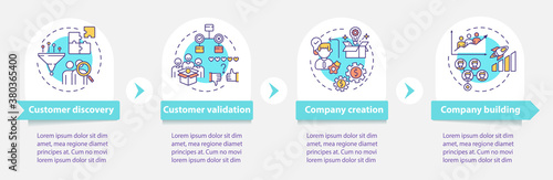 Customer development framework vector infographic template. Communication ideas presentation design elements. Data visualization with 4 steps. Process timeline chart. Workflow layout with linear icons