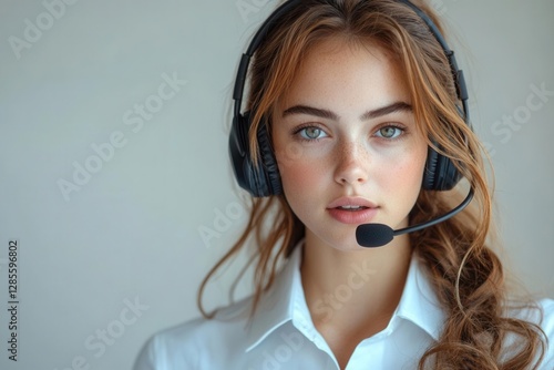 Customer Support Representative Talking on Headset Professional Corporate Portrait