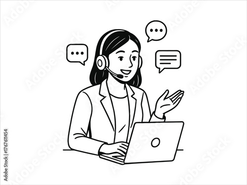 Customer Support Service female agent with headset talking