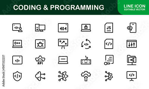 Customizable Coding and Programming Icons. Vector Graphics for Development, Design Systems, and Tech Workflows