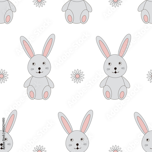 Cute bunny and flowers seamless pattern. Rabbit digital paper.