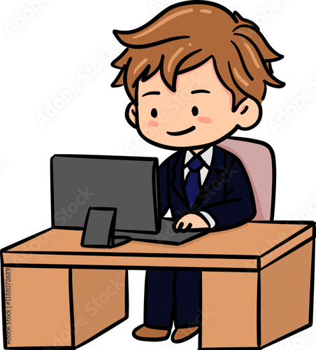 cute business man acting using computer in doodle style illustration