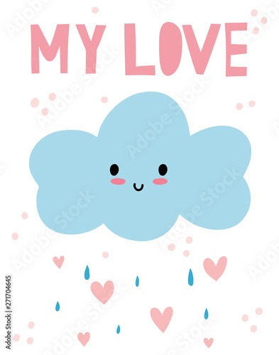 Cute cartoon cloud vector print with heart.