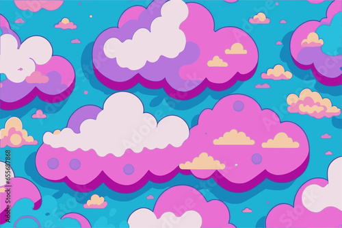 Cute cloud background, neon bright colours, cartoon background illustration pattern, repeating cloud pattern