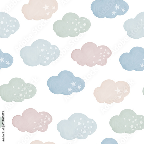 Cute Clouds Baby Watercolor Seamless Pattern