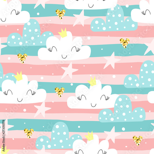 Cute hand drawn clouds and stars Seamless pattern. vector illustration.
