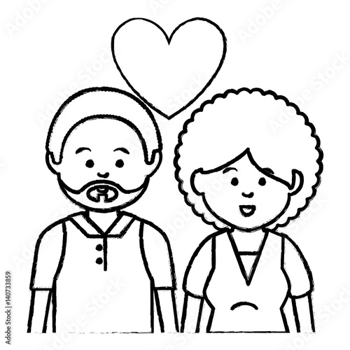 cute lovers couple ethnicity vector illustration design