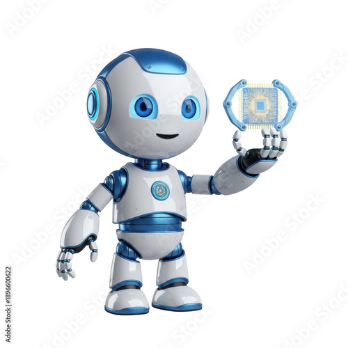 Cute Robot Holding a Microchip