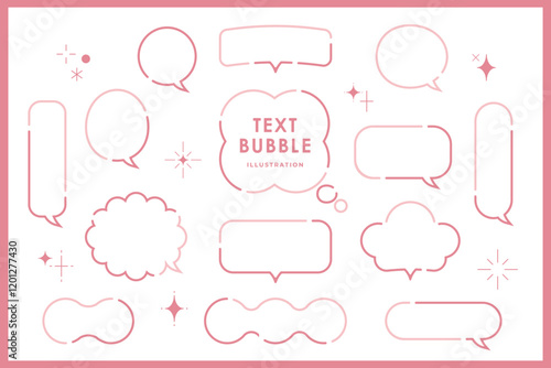 Cute speech bubble isolated pastel with frame elements illustration set. Speech talking thinking box. Dialogue cloud. 8 bit. For game development, mobile app, graphic, social media, scrapbooking