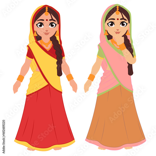 Cute Traditional Indian Girl Character Set
