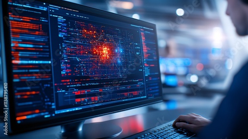 Cutting-Edge Data Visualization on Computer Screen in High-Tech Office