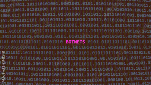 Cyber attack botnets. Vulnerability text in binary system ascii art style, code on editor screen. Text in English, English text