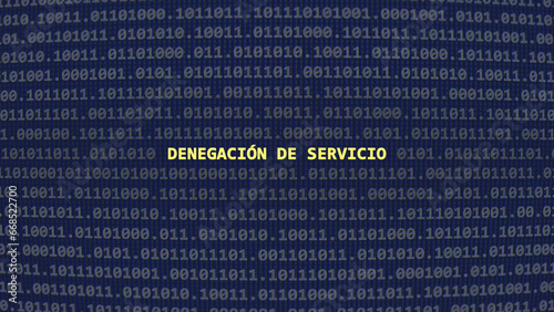 Cyber attack. Translation: denial of service. Vulnerability text in binary system ascii art style, code on editor screen.,Spanish language,text in Spanish