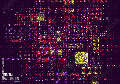 Cyber background constructed with different dots. Digital futuristic backdrop. Vector illustration.