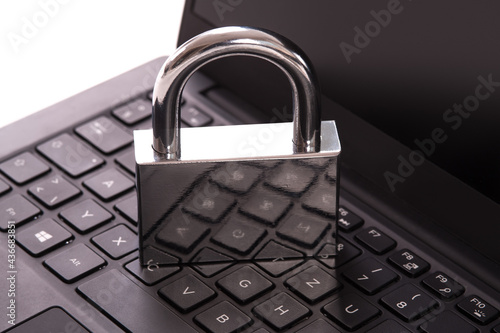 Cyber crime. Internet cyber security concept with a padlock on laptop computer. Ransomware, Malware, Encrypt and Hacking. Data security concept