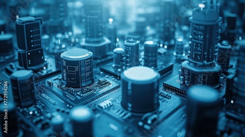cyber fortress concept, featuring towering structures with embedded security systems, symbolizing impenetrable protection against cyber attacks