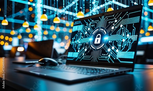 cyber security, abstract computer chip, technology background with a padlock, internet security and data protection